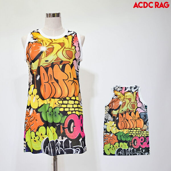 21タンクトップ | ナンバリング ダンス 衣装 ヒップホップ ガールズ 派手カワ カラフル タンクトップ メッシュ ロング ノースリーブ 派手 柄 原宿系 ファッション レディース キッズ 女の子 男の子 個性的 おしゃれ ブラック 黒 ACDC RAG [メール便可]