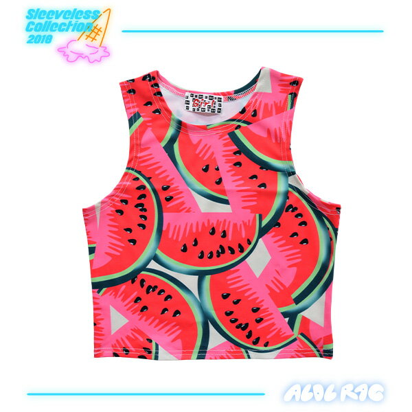 スイカ チビタンクトップ | 赤 スイカ カラフル タンクトップ ショート丈 ノースリーブ へそ出し ポリエステル 柄 夏 原宿系 ファッション レディース キッズ 女の子 男の子 かわいい ダンス 衣装 ヒップホップ 派手カワ 個性的 ACDC RAG [メール便可]