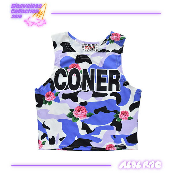 CONERチビタンクトップ | 迷彩 花柄 カラフル タンクトップ ショート丈 ノースリーブ へそ出し 派手 ポリエステル 柄 夏 原宿 原宿系 ファッション レディース キッズ 女の子 男の子 かわいい ダンス 衣装 ヒップホップ 派手カワ 個性的 ACDC RAG [メール便可]